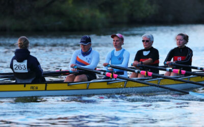 Bei der Bocksbeutel-Regatta in Würzburg starteten Ulla, Silvia in Renngemeinschaft mit Anke Dießner (Frankfurter RC) und Schlagfrau Tanja Pitz (RG Wiesbaden/Biebrich) und Steuerfrau Klara Pitz im Rennen MW 4x+ (E). Bei einer Konkurrenz von drei weiteren Booten gingen sie knapp vor den Gegnerinnen auf die Strecke und konnten so das Renngeschehen optimal im Blick behalten.