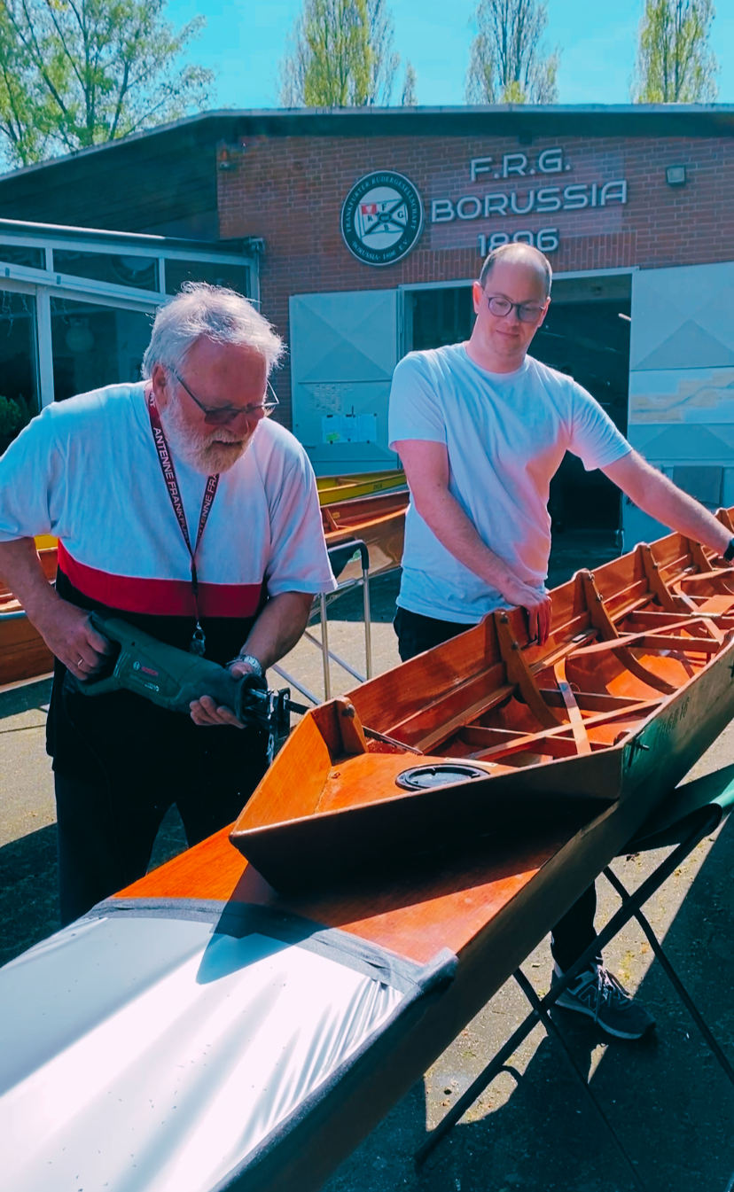 Mit Besen, Eimer und guter Laune starteten wir am 11. April in den Borussia-Putztag. Bei strahlendem Sonnenschein machten sich engagierte Mitglieder daran, Boote, Bootshalle, Kraftraum und Außenanlagen wieder auf Vordermann zu bringen und optimal auf die Saison vorzubereiten. Dach und Regenrinnen wurden gereinigt, Hecken geschnitten und die Ruder-Ergometer wieder fit gemacht. Die Boote wurden geputzt und tatsächlich auch ein paar sehr wenige vom Winterstaub befreit.
